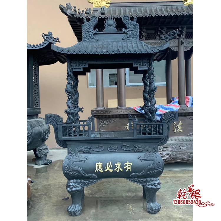 【产品说明】:长方形四龙柱香炉采用优质国际生铁或黄铜为原材料,质量上乘,不掺杂质,让铸造出来的香炉密度更好不易爆裂;并按客户要求铸上寺院、道观、景区、单位名称、花纹图案、功德芳名、公元、佛历、道历等!款式多样可供选择,定做元宝炉规格齐全。